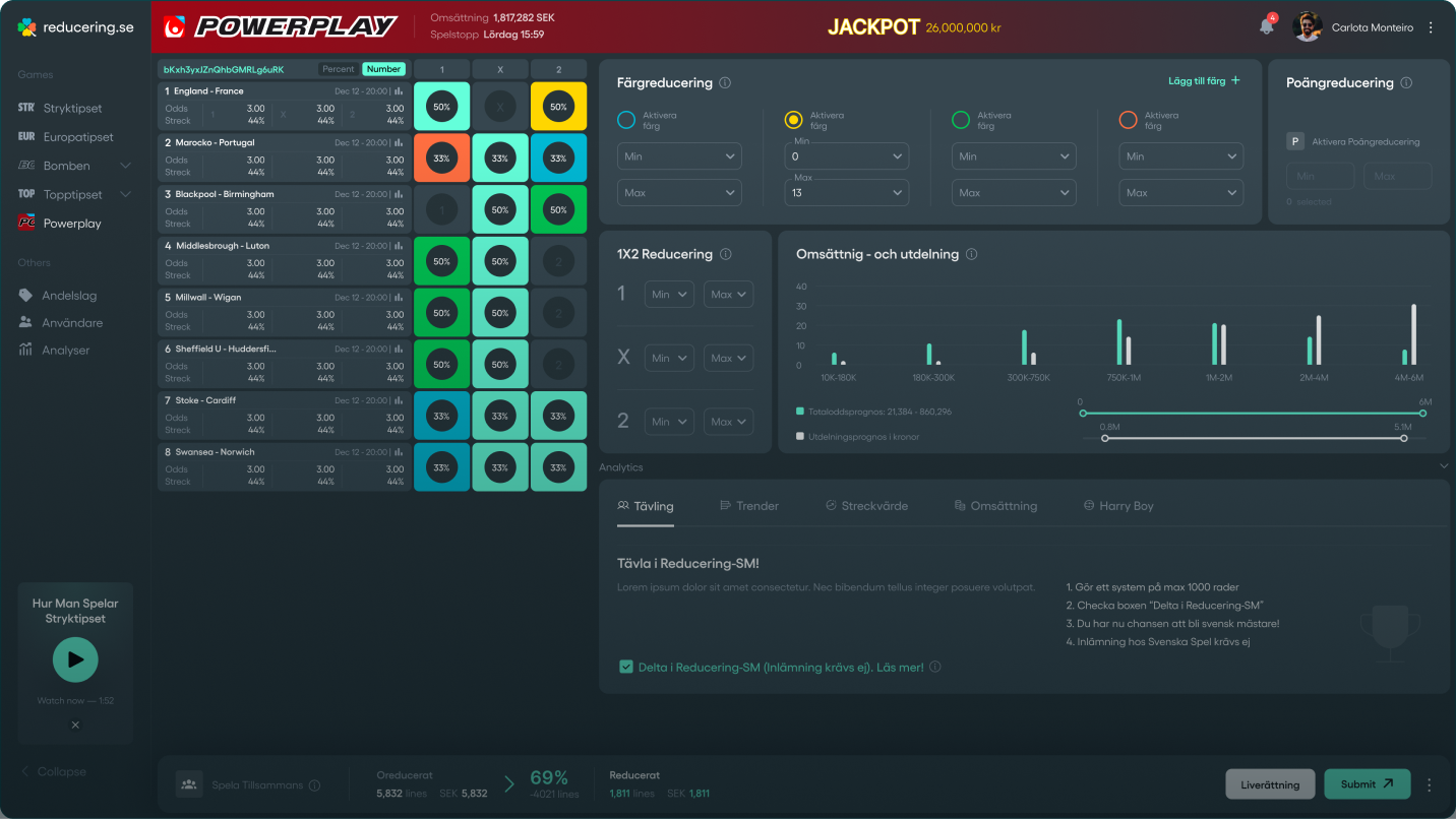 Spela bättre och smartare på Powerplay med Sveriges vassaste reduceringsverktyg - framtaget av erfarna spelexperter för att underlätta och förbättra vinstchanserna. Verktyget är enkelt att använda och helt kostnadsfritt!